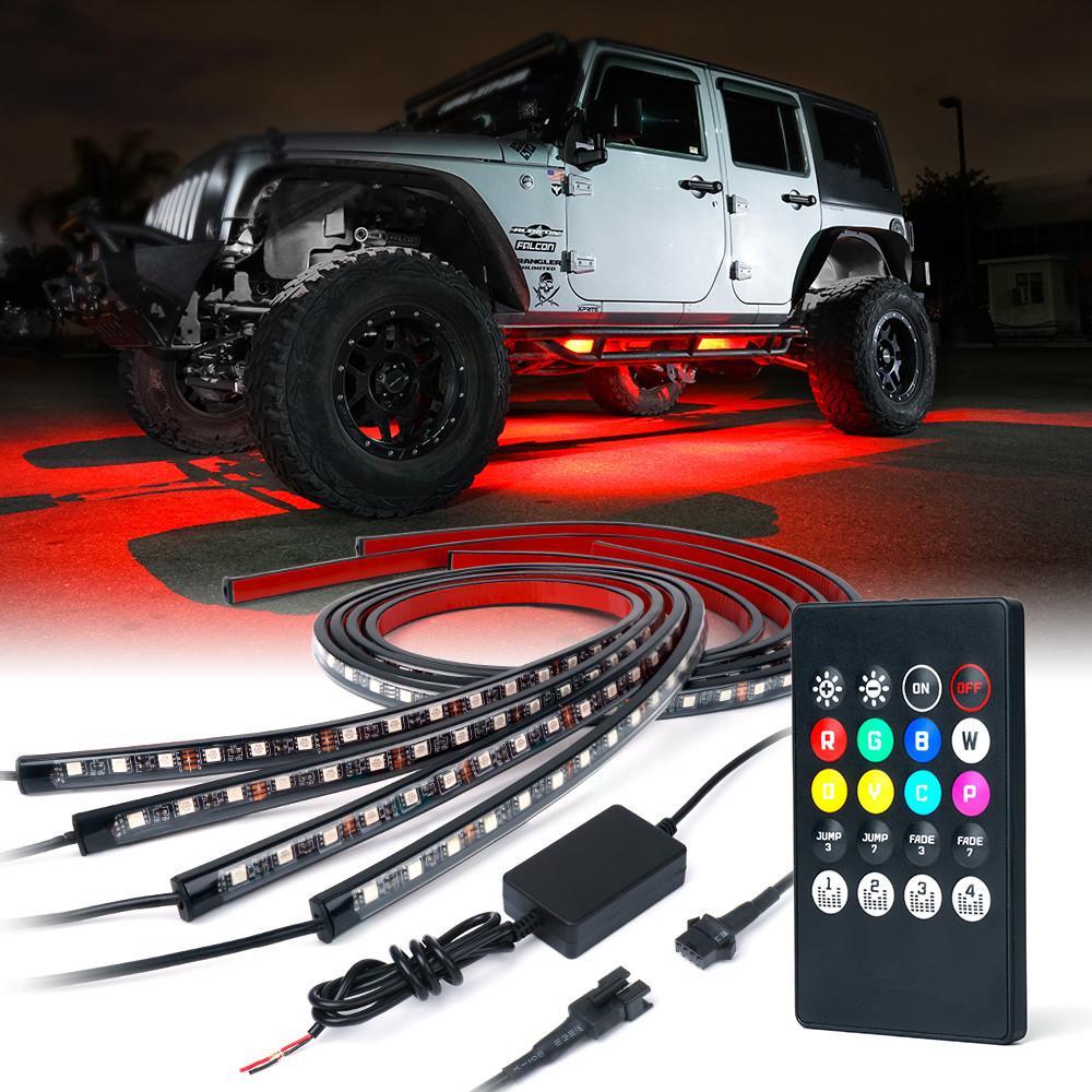Rgb led strip under car tube underglow underbody system 4pcs neon lights kit hot.